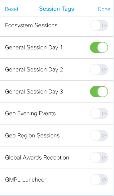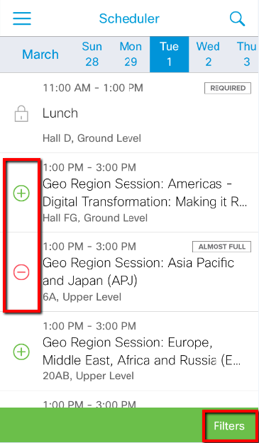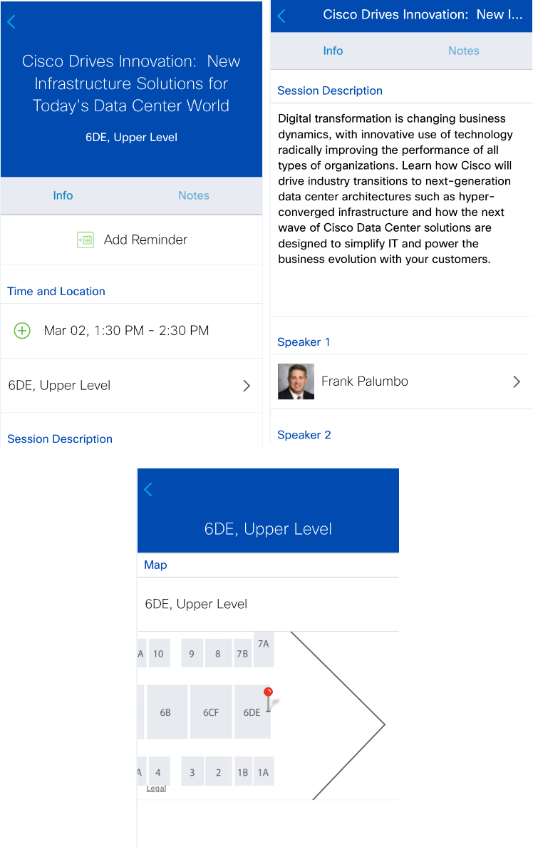 - The session details page, accessible by tapping the session title from ‘My Agenda’ or ‘Scheduler’.